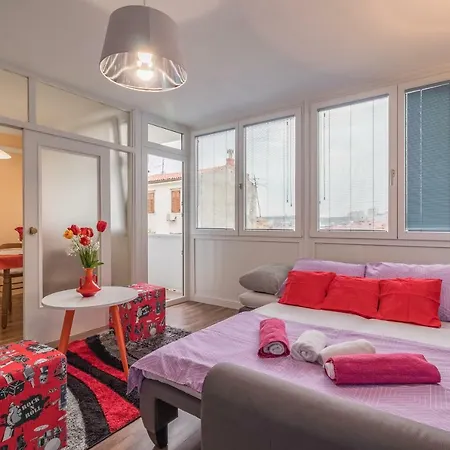 Cosy Apartment Zupanic 普拉设有厨房和配卫星频道平板电视,电视和正餐区的客房. 公寓距离普拉公民宫不到0.6公里,邻近考古学博物馆.